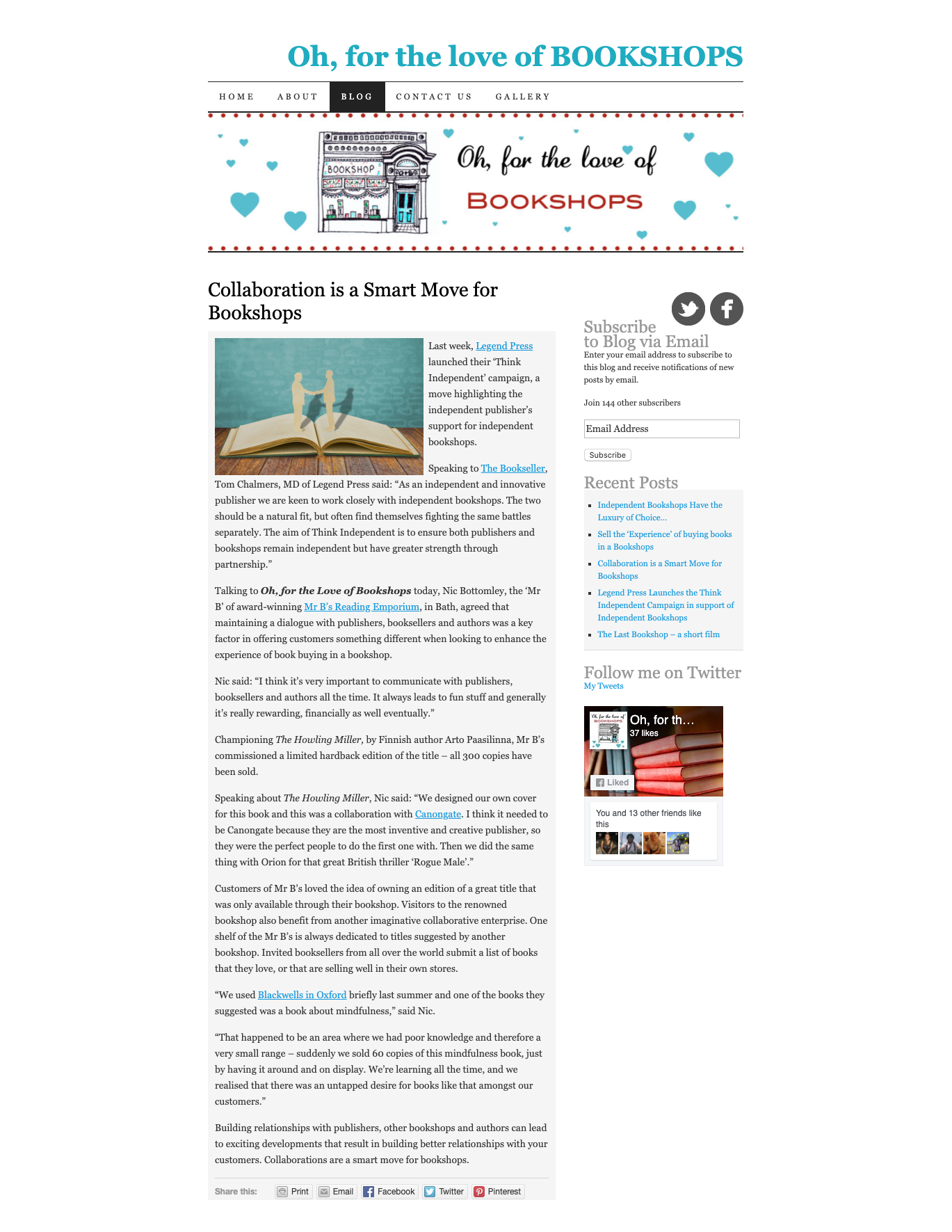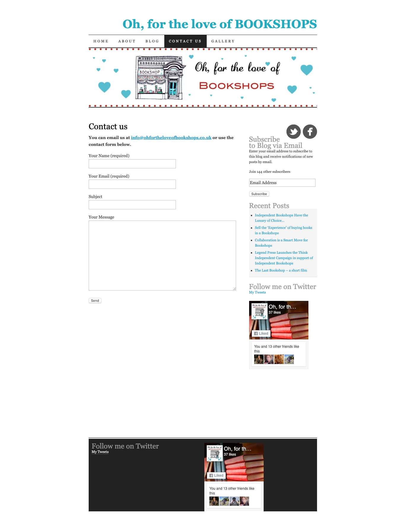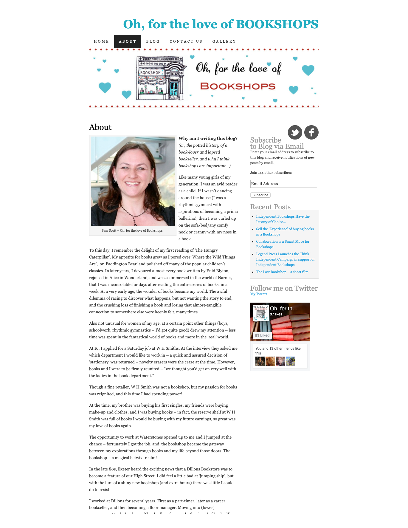 Below is a selection of images showing pages from the Oh, for the love of BOOKSHOPS website.